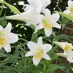 (3)半促成栽培:用小球即可。先在2-5℃下处理35-42天,9月下旬至10月中旬种植,可使麝香百合在翌年2-4月开花。若要在2月开花,温度宜保持在15℃左右;若要3月开花,温度保持在13℃为宜。而4月下旬至5月开花,可以不用加温。为使发芽一致,种球可先在0-3℃下处理21天。
