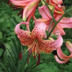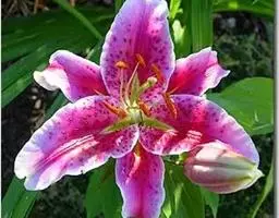亚洲百合,百合科百合属植物。多年生草本,高30~60厘米。鳞茎卵球形。总状花序,花漏斗状,朝上开放,…