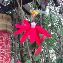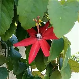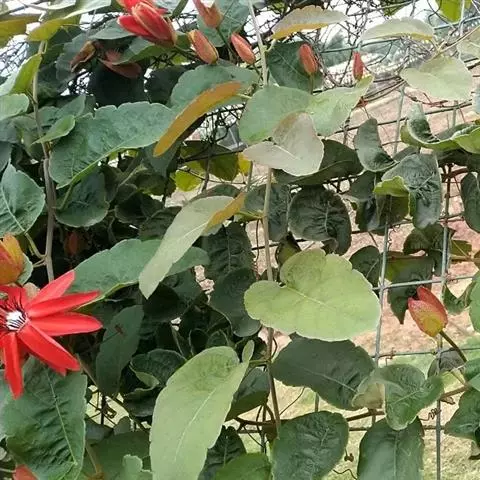 红花西番莲 是西番莲科、西番莲属多年生草质藤本,茎圆形,具卷须,长6-8米。叶互生,长圆形至长卵形,…