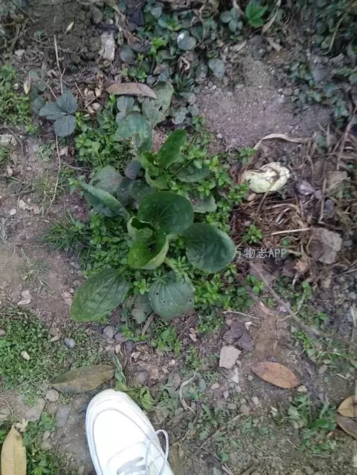 一年生或二年生草本。直根长,具多数侧根,多少肉质。根茎短。叶基生呈莲 平车前 座状,平卧、斜展或直立;叶片纸质,椭圆形、椭圆状披针形或卵状披针形,长3-12cm,宽1-3.5cm,先端急尖或微钝,边缘具浅波状钝齿、不规则锯齿或牙齿,基部宽楔形至狭楔形,下延至叶柄,脉5-7条,上面略凹陷,于背面明显隆起,两面疏生白色短柔毛;叶柄长2-6cm,基部扩大成鞘状。