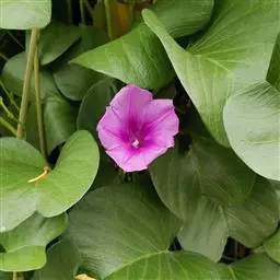 番薯 Lam.),多年生草质藤本植物,具有乳汁;其块根为白、红或黄色;茎生不定根;叶呈宽卵形或卵状心形,叶色有浓绿、黄绿、紫绿等,前端渐尖,基部呈心形或近平截;花冠为粉红、白、淡紫或紫色,呈钟状或漏斗状,无毛;蒴果呈卵形或扁圆形;由于番薯是于异花授粉,自花授粉常不结实,所以有时只见开花不见结果。 种子1-4粒,通常2粒,无毛。番薯原产于南美洲及大、小安的列斯群岛,现已广泛栽培在全世界的热带、亚热带地区,但在一些较北的地区如黑龙江省也已栽种成功,中国大多数地区都普遍栽培。番薯适应性强,喜温暖多光而不耐霜冻,抗旱耐碱,适种于肥沃而排水良好的砂质壤土,是一种易于保收的作物。番薯是一种高产而适应性强的粮食作物,在中国南方,有“一造番薯半年粮”的说法, 与工农业生产和人民生活关系密切;块根除作主粮外,也是食品加工、淀粉和酒精制造工业的重要原料;根、茎、叶可作
