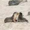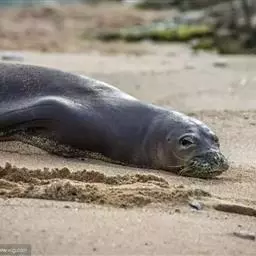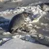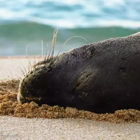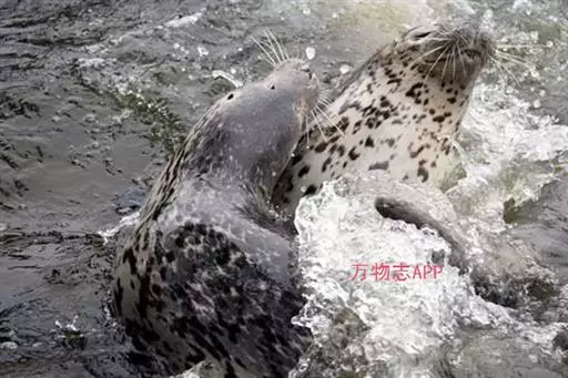 斑海豹 斑海豹发情时精神非常旺盛,在水中不停地游动,但食量减少或拒食,雄兽的阴茎外露,雌兽的阴门红肿。它们在水中相互追逐,时而上岸,时而入水,并发生阵阵叫声。交配需要沉入深水中进行,此时雌兽不动,雄兽的后鳍摆动,交配后双双回到水面上。雌兽的怀孕期约为8~10个月,每年2月产仔,分娩时需要爬到岸边或冰块上,每胎只产1仔。但在产仔前,雌兽会在浮冰上挖掘出一个巢穴,产仔时躲在巢穴中,迅速产下的幼仔躲避危险的办法也是潜入海中,或者在栖息的浮冰上挖穿一个大洞,以便随时潜入水中逃走。幼仔初生时体重约为5~6公斤,全身披着白色的胎毛,被人们称作“白色的小海豹”。这种白色的胎毛在冰雪的环境中是一种保护色,使它们不易被天敌发现,但也因为能吸收大量水分,不利于它们在水中游泳。因此,幼仔在出生后的第16天后皮下脂肪渐渐形成时,就开始脱换胎毛。大约需要9天的时间,胎毛便全部脱换完毕,换成了短、粗、硬,光亮而有斑点的新毛。这种新毛不易淋湿,它们一爬上岸水就直往下淌,不会在皮肤上结冰。幼仔出生几分钟后就表现出一种本能的跟随性,它在尾随雌兽的时候几乎不停地发出叫声,这种声音显然是为了与雌兽保持联系,而且能够同时在空气和水传播,直到断奶后叫声才停止。雌兽也特别留意幼仔的行动,即使在水中也能仰头向后看。如果遇到紧急情况,雌兽会将身体一弹,腾空而起用肥胖身体的重力使浮冰砸破,然后同幼仔一起落水而逃。经过一个月左右的哺乳期,幼仔的体重增至20千克以后,就开始独立生活了。西太平洋斑海豹性成熟的年龄为3~5岁,也有2岁就达到性成熟的,性成熟后生长趋于缓慢,雄性15岁,雌性10岁后就不再增长。