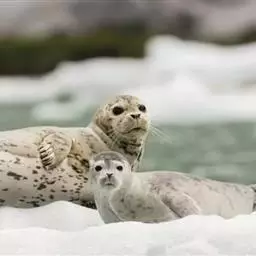 斑海豹,Phoca largha,也叫大齿斑海豹、大齿海豹,是在温带、寒温带的沿海和海岸生活的海洋性哺乳类动物。生活在北半球的西北太平洋,主要分布在楚科奇海、白令海、鄂霍次克海、日本海和中国的渤海、黄海北部。它们有洄游的繁殖习性,为肉食性动物,食物主要为鱼类和头足类。斑海豹是唯一能在中国海域繁殖的鳍足类动物,属中国国家一级保护动物,渤海辽东湾是全球斑海豹8个繁殖区之一。