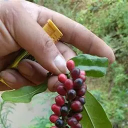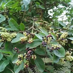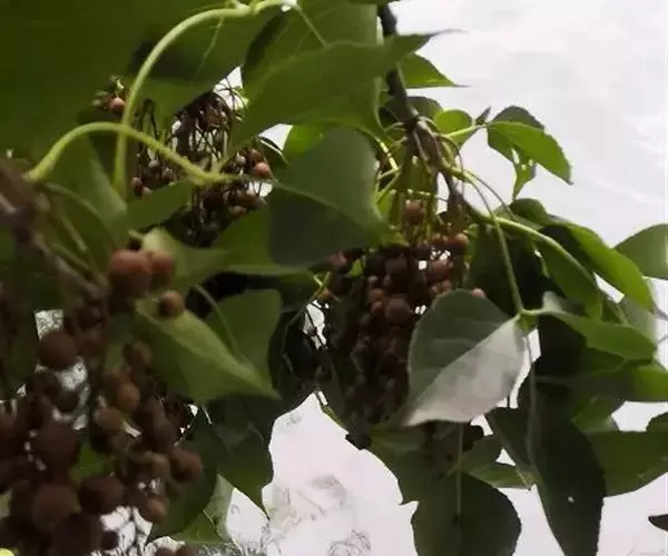 果实浆果状,圆球形,直径5-7毫米,成熟时褐红色。花期在4-5月,果期10-11月。