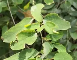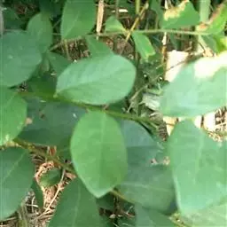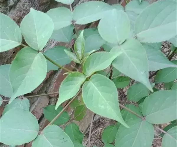 三出复叶;叶柄长9-13.5厘米;顶生小叶通常较两侧的大,小叶片纸质,卵形或椭圆状卵形,有时长圆状卵形,长5-9(14)厘米,宽3-6(9)厘米,顶端突尖或短渐尖,基部圆或浅心形,边缘具钝细锯齿每1厘米长4-5个;顶生小叶柄长1.5-4(6)厘米,侧生小叶柄长3-14毫米;托叶小,早落。