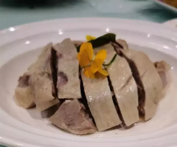 南京盐水鸭 盐水鸭制作包括宰杀、腌制、烘干、煮熟等过程,因其腌渍期较短,故需现做现吃。其加工过程中,控制火候为其成败关键。南京名厨所制盐水鸭脯上席时,特讲究鸭块之造型,或为菱花状,或为葵花状,以其形式之美而佐食家之逸兴。该菜成型皮白油润,肉嫩微红,淡而有咸,香、鲜、嫩三者毕具,令人久食不厌。