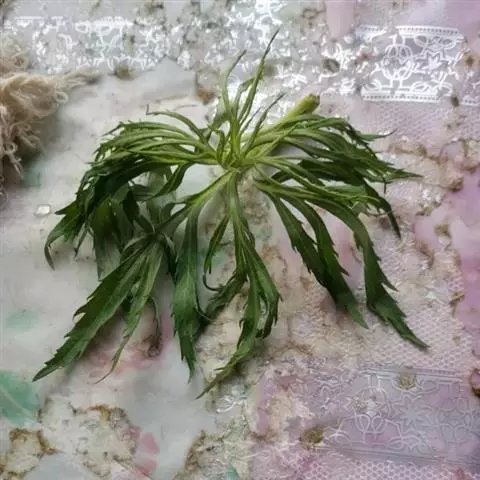 叶簇生,二型。不育叶的柄长3-40厘米,粗10-13厘米,绿色,圆柱形,肉质,不膨胀,上下几相等,光滑无毛,干后压扁;叶片直立或幼时漂浮,有时略短于能育叶,狭长圆形,长6-30厘米,宽3-15厘米,先端渐尖,基部圆楔形,二至四回羽状深裂,裂片5-8对,互生,斜展,彼此远离,下部1-2对羽片较大,长可达10厘米,宽可达6.5厘米,卵形或长圆形,先端渐尖,基部近圆形、心脏形或近平截,一至三回羽状深裂;小裂片2-5对,互生,斜展,彼此分开或接近,阔卵形或卵状三角形,长可达35厘米,宽可达3厘米,先端渐尖、急尖或圆纯,基部圆截形,有短柄,两侧有狭翅,下延于 水蕨 羽轴,深裂;末回裂片线形或线状披针形,长可达2厘米,宽可达6毫米,急尖头或圆钝头,基部均沿末回羽轴下延成阔翅,全缘,彼此疏离;第二对羽片距基部一对3-5厘米,向上各对羽片均与基部羽片同形而逐渐变小。能育叶的柄与不育叶的相同;叶片长圆形或卵状三角形,长15-40厘米,宽10-22厘米,先端渐尖,基部圆楔形或圆截形,二三回羽状深裂;羽片3-8对,互生,斜展,具柄,下部1-2对羽片最大,长可达14厘米,宽可达6厘米,卵形或长三角形,柄长可达2厘米;第二对羽片距第一对1.5-6厘米,向上各对羽片均逐渐变小,一至二回分裂;裂片狭线形,渐尖头,角果状,长可达1.5-4(6)厘米,宽不超过2毫米,边缘薄而透明,无色,强度反卷达于主脉,好像假囊群盖。主脉两侧的小脉联结成网状,网眼2-3行,为狭长的五角形或六角形,不具内藏小脉。叶干后为软草质,绿色,两面均无毛;叶轴及各回羽轴与叶柄同色,光滑。