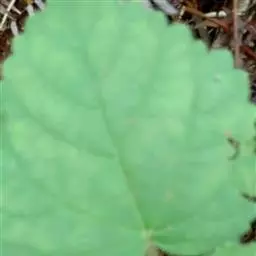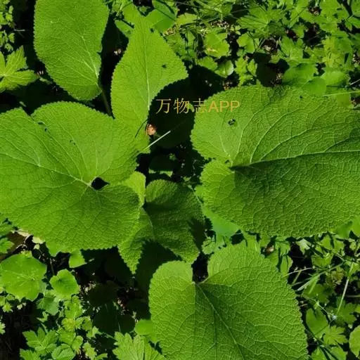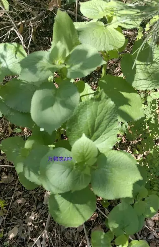 叶近圆形、圆卵形至卵状长圆形,长5.2-12厘米,宽2.5-12厘米,先端急尖,稀渐尖,基部浅心形或圆形,边缘为具胼胝尖的锯齿状牙齿,或为不整齐的圆齿,上面橄榄绿色,疏被疏柔毛及星状疏柔毛,下面较淡,毛被同叶上面,但有时较密,叶柄长1-12厘米,腹凹背凸,密被短硬毛;苞叶通常为卵形,长1-3.5厘米,宽0.6-2厘米,边缘为粗锯齿状牙齿,毛被同茎叶,叶柄长2-3毫米。
