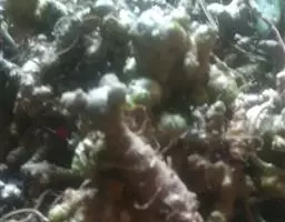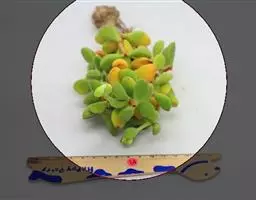 红数珠 Crassula hottentota——景天科青锁龙属。红数珠叶片对生,叶片长圆型。叶片肥厚。叶片表面有不规则凸起的白色颗粒,就象面包的表面撒了白色的佐料一样。红数珠花开乳白色,五角型的花瓣。授粉必须是异花受粉。