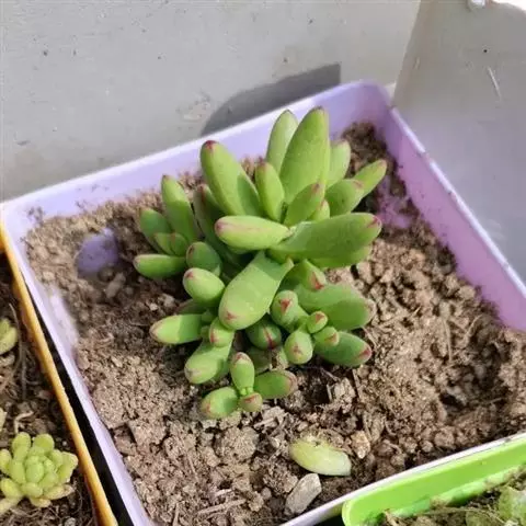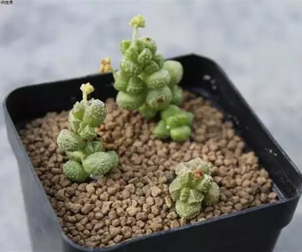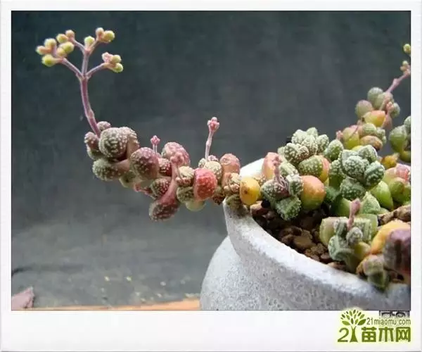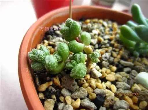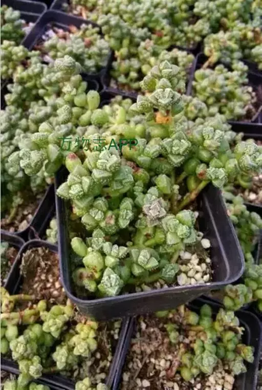 红数珠是景天科青锁龙属植物,叶片对生,叶片长圆型,叶片肥厚。叶片表面有不规则凸起的白色颗粒,…