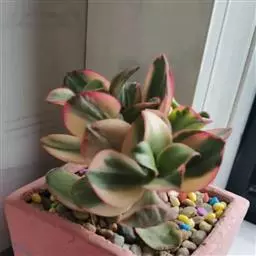 三色花月锦是景天科青锁龙属多肉植物,燕子掌的栽培品种,叶片有红、黄、白斑块,色彩斑斓。花期秋季。