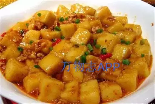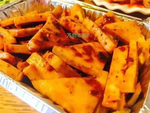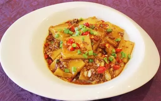 制作工艺:传统的米豆腐制作是将阆中本地的大米加水浸泡发胀后,用石磨磨成米浆,用温火搅煮成糊团。起锅后,手沾碱水拍成小圆柱或切成方块,上笼蒸熟即可。