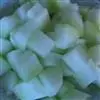 1. 将红菜椒洗净去籽,与黄瓜一起切成1cm见方的小丁。蟹肉棒化冻 后切成斜丁。