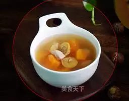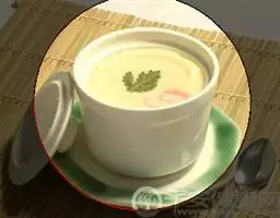 3、在高汤中加入一勺淀粉,在加入少许盐和白胡椒粉;将上面制作的高汤倒入锅中,煮至沸腾透明即可;