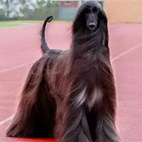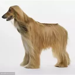 阿富汗猎犬全身披丝绢状的长毛,毛色鲜艳,呈多种颜色,背中线附近毛短,…