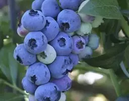 蓝莓是杜鹃花科、越橘属的落叶灌木,小枝绿色,具棱或圆柱形,通常具成行的柔毛;叶片近革质,卵形至椭圆形,…