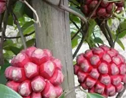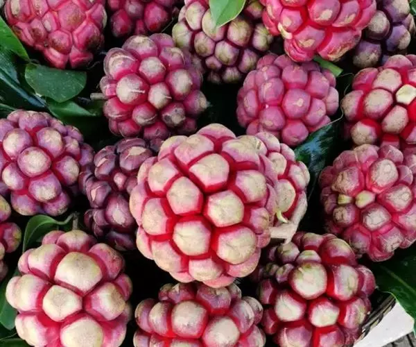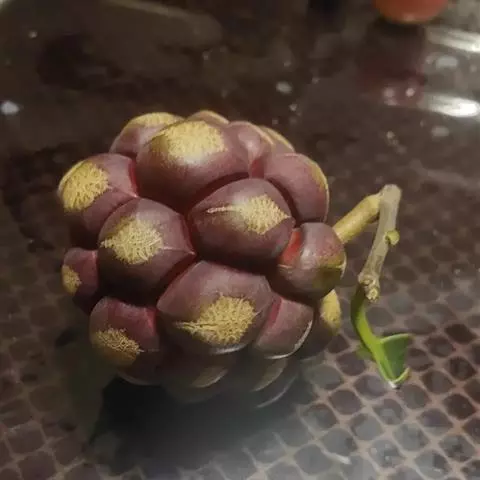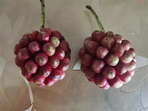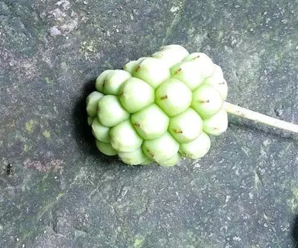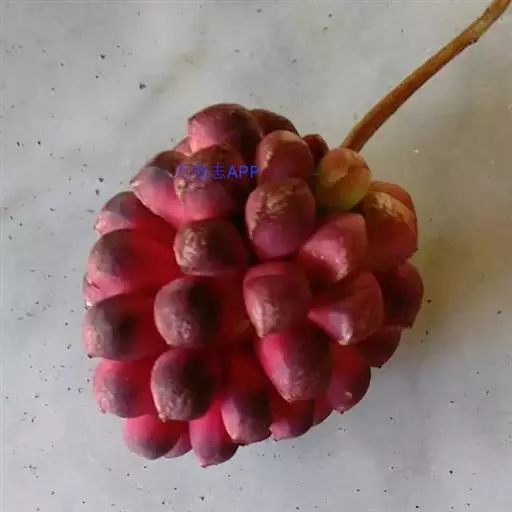 聚合果球形,径1.5-3.5厘米;小浆果倒卵圆形,长8-14毫米,外果皮薄革质,干时显出种子。种子2-3,稀4-5,肾形或肾状椭圆体形,长4-6毫米,宽3-5毫米。