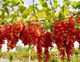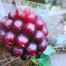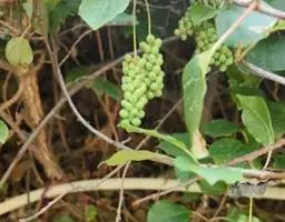 3、搭架:移植后第二年即应搭架。可用水泥柱或角钢做立柱,用木杆或8号铁线在立柱上部拉一横线,每个主蔓处立一竹杆或木杆,竹杆高2.5—3米,直径1.5—5厘米,用绑线固定在横线上,然后引蔓上架,开始时可用强绑,之后即自然缠绕上架。