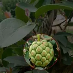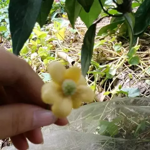 花单生于叶腋,雌雄异株;雄花:花被片白色或淡黄色,8-17片,中轮最大1片,椭圆形,长8-13毫米,宽4-10毫米;花托椭圆体形,顶端伸长圆柱状,不凸出雄蕊群外;雄蕊群球形,直径8-9毫米,具雄蕊30-70枚;雄蕊长1-2毫米,药隔与花丝连成扁四方形,药隔顶端横长圆形,药室几与雄蕊等长,花丝极短。花梗长0.7-4.5厘米;雌花:花被片与雄花相似,雌蕊群椭圆体形或球形,直径约l0毫米,具雌蕊40-60枚;子房宽卵圆形,花柱具盾状心形的柱头冠,胚珠3-5叠生于腹缝线上。花梗长3-13厘米。