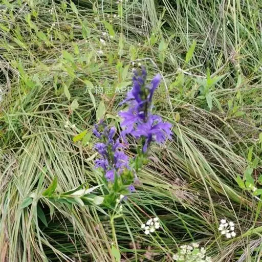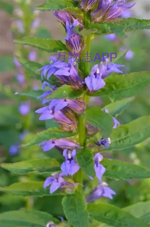 多年生草本,高60-120厘米。根状茎直立,生多数须根。茎圆柱状,通常不分枝,无毛。叶螺旋状排列,在茎的中上部,较密集;无柄;叶片厚纸质,宽披针形至条状披针形,长2.5-5.5厘米,宽3-16毫米,先端渐尖,基部近圆形至阔楔形,两面无毛,边缘有细锯齿。总状花序顶生,长8-35厘米,无毛;苞片叶状,窄披针形,比花短;花梗长5-12毫米,花萼筒杯状钟形,长约4毫米,无毛,裂片三角状披针形,长5-7毫米,宽约2毫米,全缘,无毛;花冠蓝紫色,长2.5-3厘米,近二唇形,外面无毛,内面具长柔毛,上唇2裂长匙形,下唇3裂片椭圆形,裂片边缘密被睫毛;雄蕊在基部以上连合成筒,花丝筒无毛,花药结合线上密被柔毛,仅下方2枚花药先端具笔毛状髯毛。蒴果倒卵形。种子近半圆形,棕红色。花、果期7-9月。