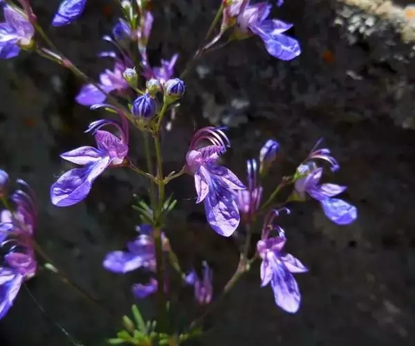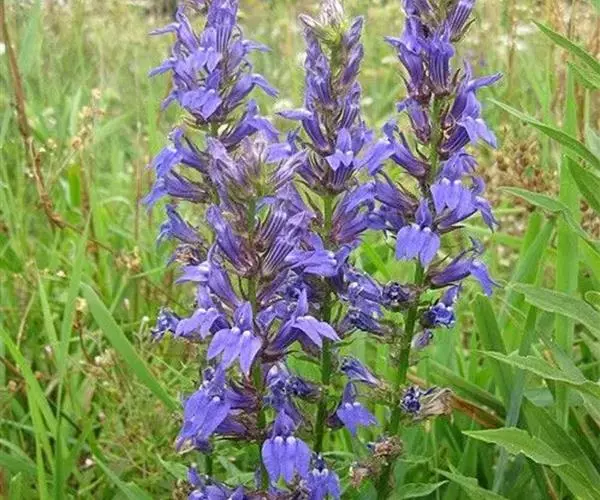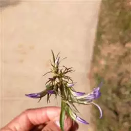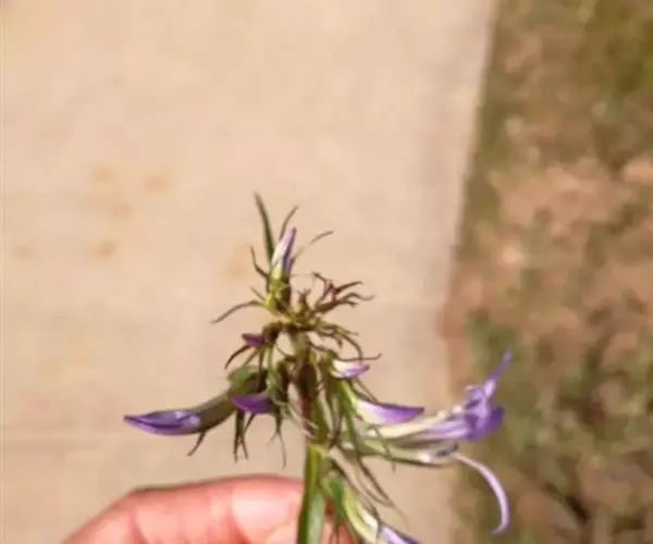 药材性状:根茎较粗壮,具多数白色细须根。茎直立。单叶互生,披针形,先端尖,边缘具细锯齿。总状花序生茎顶端,花萼钟状5裂;花冠深蓝色,近二唇形,上唇2全裂,下唇3裂,裂片长圆形,边缘密生白色缘毛。有时可见小蒴果。气微,味微苦。