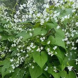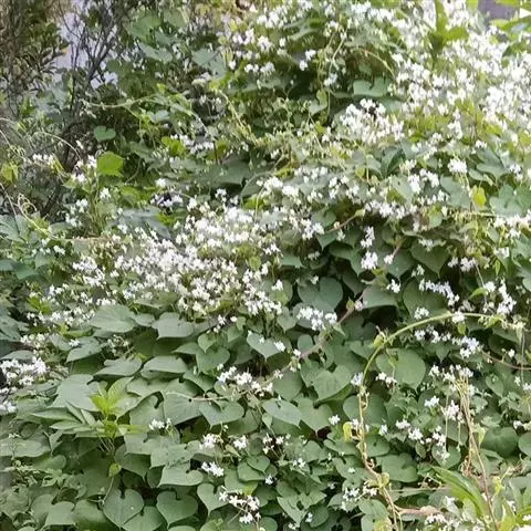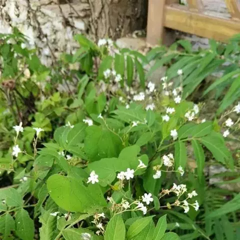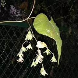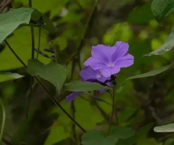 描述: 攀援灌木,茎缠绕,小枝近圆柱形,短,极无毛。叶宽卵状心形,长6-8厘米,宽4.5-6厘米,先端渐尖或骤渐尖,基部深心形,两面无毛,背面苍白色,基出脉7,侧脉1-2对,侧脉及网脉密生小瘤点;叶柄纤细,较叶片短2倍,长3-4厘米,无毛,具槽。苞叶,极小或逐渐缩小,长4-2厘米,宽25-10毫米,与叶同形,柄长20-3毫米。花序腋生,为总状花序或圆锥花序,总梗细,无毛,具白色小瘤点;花梗纤细,长1-2厘米,顶端或近顶端具2-3小苞片,基部具苞片,小苞片较萼片小2-3倍,狭,长0.5-1.5毫米;萼片线形,锐尖,近等长,长3-4毫米,背面极无毛,果熟时3个极增大,长圆形,先端钝且具小尖头,带紫色,长2.5-3厘米,宽1.3厘米,干膜质,具8-9条纵贯的脉,及具细网脉,两面均明显。花冠狭漏斗形,长25-30毫米,白色,先端骤然开展,冠檐浅裂,裂片圆形,顶端微缺,具小短尖头;雄蕊着生于花冠管中下部,3列,花丝近于无,长1-2毫米,既不扩大,也不具乳突;花药长圆状心形,长约2毫米;子房球状,无毛,1室,2胚珠;花柱短,长2-5毫米,柱头棒状,长约0.6毫米。蒴果球形,紫红色。种子1。