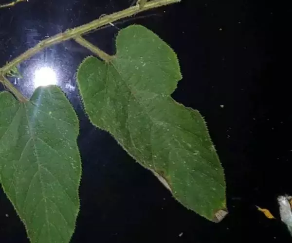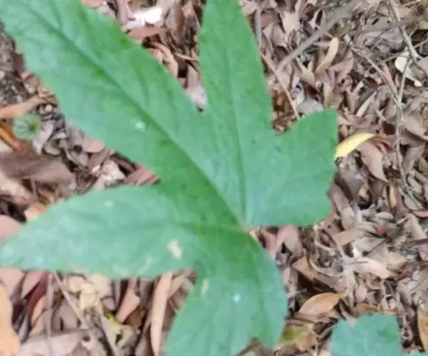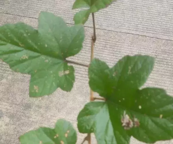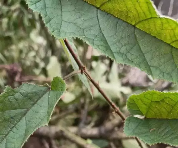 单叶,心状长卵形,长7- 14厘米,宽5-11厘米,上面无毛或沿叶脉疏生柔毛,有明显皱纹,下面密被锈色绒毛,沿叶脉有长柔毛,边缘3-5裂,有不整齐的粗锯齿或重锯齿,基部心形,顶生裂片长大,披针形或卵状披针形,比侧生裂片长很多,裂片顶端钝或近急尖;叶柄长2.5-5厘米,被绒毛并有稀疏小皮刺;托叶宽倒卵形,长宽各约1-1.4厘米,被长柔毛,梳齿状或不规则掌状分裂,裂片披针形或线状披针形。