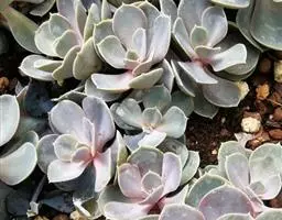 紫珍珠是景天科石莲花属的多年生肉质草本植物。植株中小型;叶片肉质,匙形,呈莲座状紧密排列;叶片粉紫色,…