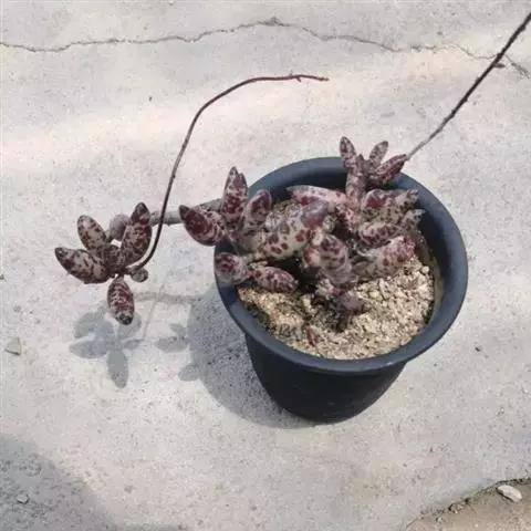 福娘为景天科银波锦属的肉质草本植物。对生的叶片呈短棒状,叶色灰绿,表覆白粉,叶缘外围镶着紫红色,…