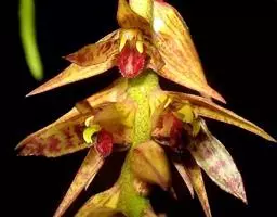 黄石斛:茎直立或下垂,多少肉质,细圆柱形,不分枝,具多数节。叶革质,长圆状披针形,…