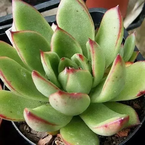 小红衣是景天科、拟石莲花属的一种多肉植物。叶片匙形,扁平细长,叶表具白粉,有明显的半透明边缘,…