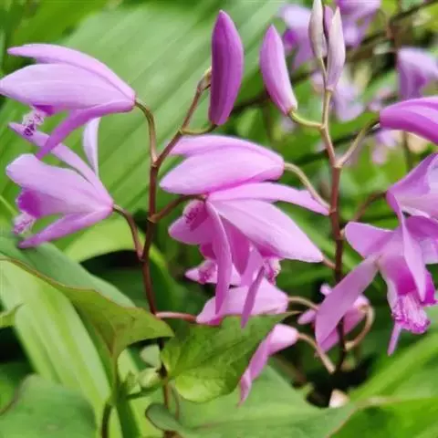 苞舌兰:假鳞茎扁球形,通常粗1-2.5厘米,被革质鳞片状鞘,顶生1-3枚叶。叶带状或狭披针形,…