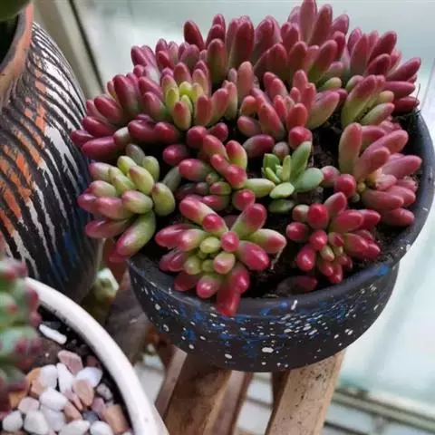 虹之玉是景天科景天属的多肉植物,多年生肉质草本植物。生长速度较快,叶片肉质,呈长椭圆形,约1厘米长,…