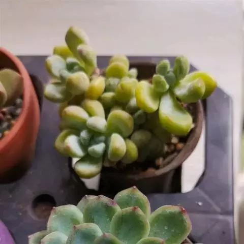 灯美人是景天科的园艺品种,多肉植物。叶片近柱状,丛生,在日照时间长、温差大的环境下会呈现橙粉色。
