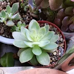 红稚莲是景天科石莲花属的多肉植物。叶片长匙形,先端稍尖,叶面光滑无粉,叶背有凸起的龙骨,…