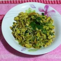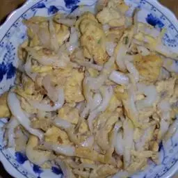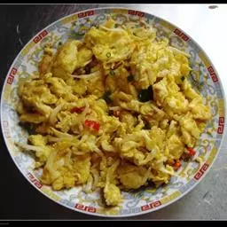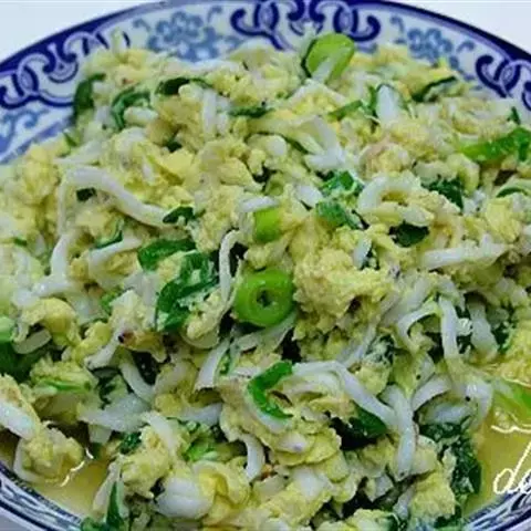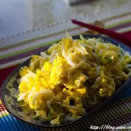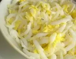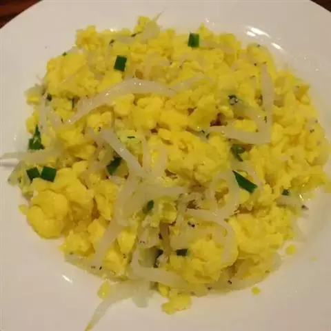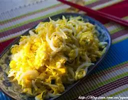 主料:鸡蛋150克,韭黄150克 韭黄炒蛋 调料:花生油50克,盐3克,白砂糖5克