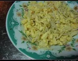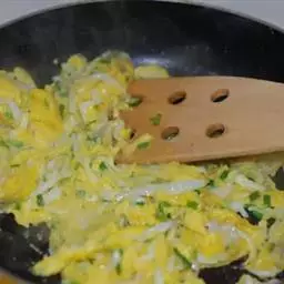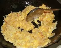 3.锅里热油,倒入鸡蛋液,差不多凝固的时候,划散翻炒一会儿,然后盛起来备用