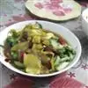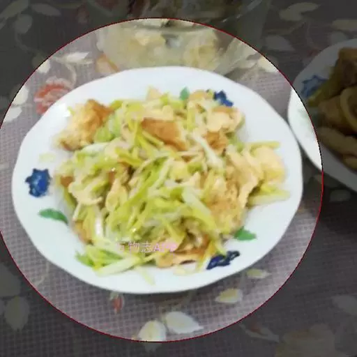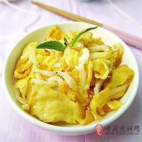 1. 将蛋打入碗内,放盐少许打散,下锅煎成薄蛋皮,切条;