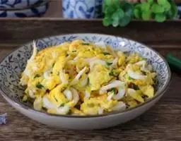 韭黄炒蛋是用鸡蛋、韭黄制作的一道南方地区的家常菜。此菜有益智补脑、防癌抗癌、贫血等功效。鸡蛋中含有较多的维生素B和其他微量元素,可以分解和氧化人体内的致癌物质,具有防癌作用。