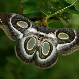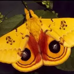 孔雀蛱蝶展翅宽50~60mm。翅膀表面红色,上、下翅有一大型彩色眼纹;翅膀腹面淡褐色,拟似烟熏枯叶…