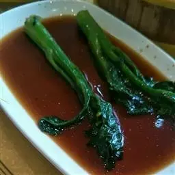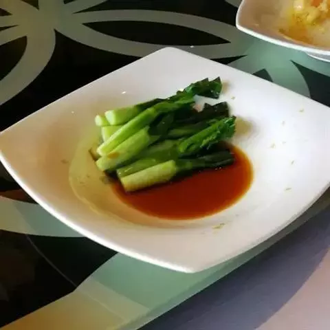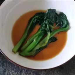 白灼菜心 调味料:调和油、蚝油1又1/2大勺、鲜味汁1大勺、高汤1/4杯、水淀粉、盐少量、鸡精。