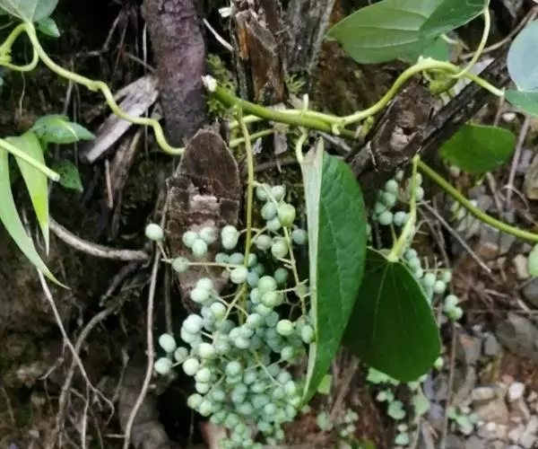 木质大藤本,长可达20余米;老茎灰色,树皮有不规则纵裂纹,枝圆柱状,有规则的条纹,被柔毛至近无毛。叶革质至纸质,心状圆形至阔卵形,长6-15厘米或稍过之,顶端渐尖或短尖,基部常心形,有时近截平或近圆,边全缘、有角至5-9裂,裂片尖或钝圆,嫩叶被绒毛,老叶常两面无毛,或仅上面无毛,下面被柔毛;掌状脉5条,很少7条,连同网状小脉均在下面明显凸起;叶柄长5-15厘米左右,有条纹,无毛或被柔毛。圆锥花序长可达30厘米,通常不超过20厘米,花序轴和开展、有时平叉开的分枝均纤细,被柔毛或绒毛,苞片线状披针形。雄花:小苞片2,紧贴花萼;萼片背面被柔毛,外轮长圆形至狭长圆形,长2-2.5毫米,内轮近卵形,与外轮近等长;花瓣稍肉质,长0.7-1毫米;雄蕊长1.6-2毫米;雌花:退化雄蕊丝状;心皮无毛。核果红色至暗紫色,径5-6毫米或稍过之。花期夏季,果期秋末。