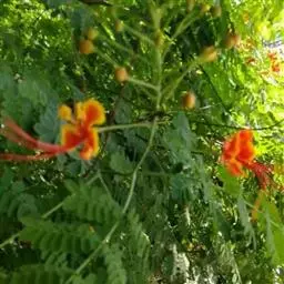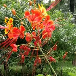 洋金凤 Sw.),豆科小凤花属灌木状或小乔木植物,枝无毛,绿或粉绿色;二回羽状复叶;总状花序伞房状,…