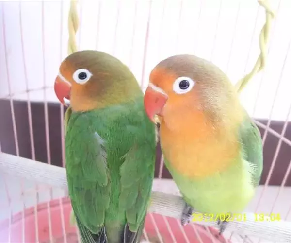 人工培育的黄领牡丹鹦鹉身体的颜色出现变化,头、颈和胸变为橙红色,还或有一种蓝色型的品种在1927年出现,胸、颈为白色,背、翅、尾和腿为浅蓝色,喙也变为粉红色或黄色。