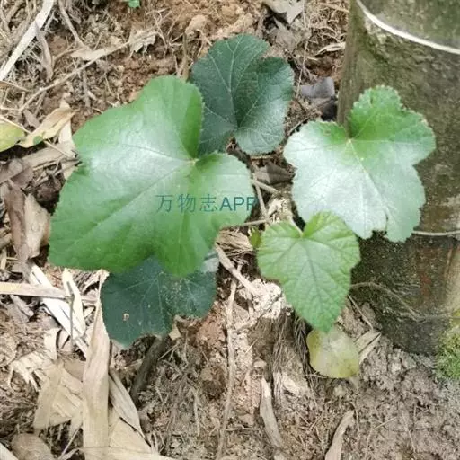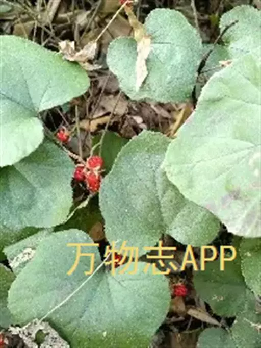 蔓性常绿小灌木。茎常伏地生根,长出新株,密生褐色或灰白色柔毛,无刺或有少数刺;葡匐枝长达2m。单叶;叶柄长3-9cm;托叶条裂;叶片近圆形,直径5-11cm,先端急尖或圆钝,基部心形,边缘常5浅裂,上面近无毛,下面和叶柄有绒毛,沿叶脉较密。总状花序短,腋生,有花4-10朵,密集;总花梗和花梗密生灰白色短绒毛和散生的刺刚毛;花白色,直径约1cm;萼裂片披针形,外面淡黄色长毛。聚合果近球形,直径6-10mm,紫黑色。花期7-8月,果期9-10月。