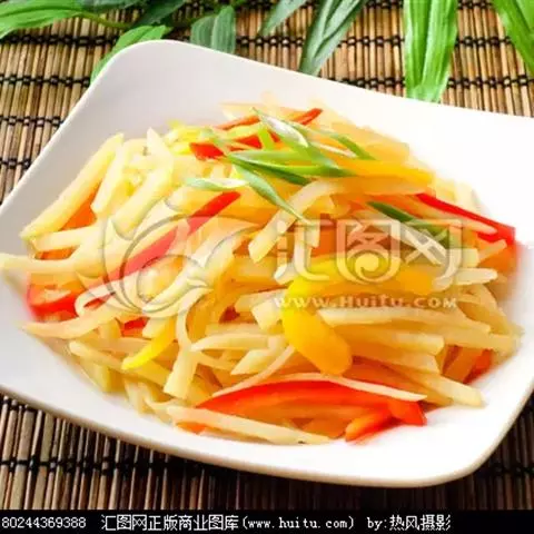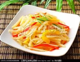 醋熘三丝是以土豆、青椒等为主要食材制作的美食。