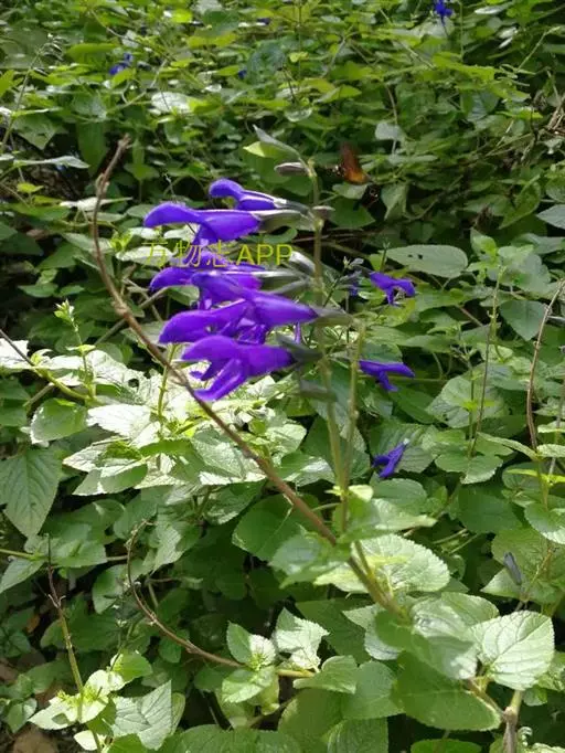 原产北美南部,现我国各地均有栽培。多年生草本;分枝多,株形高,可达1.5米以上。叶对生,卵圆形,全缘或具钝锯齿,色灰绿,质地厚,叶表有凹凸状织纹;含挥发油,具强烈芳香,能吸引蜂蝶。花深蓝色,比其它鼠尾草花大