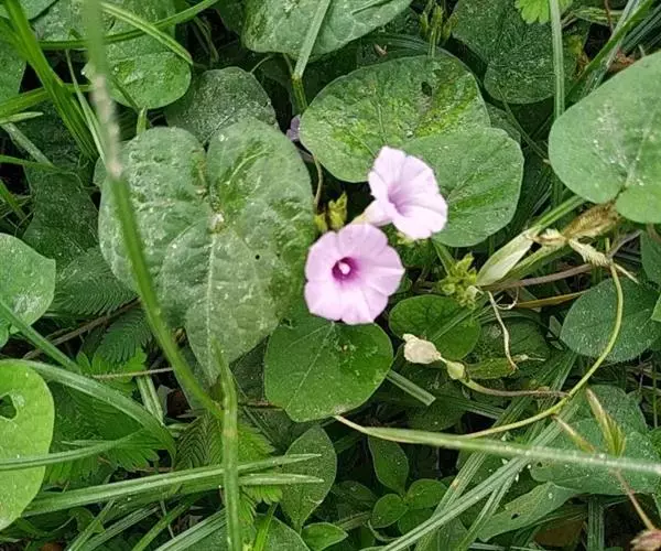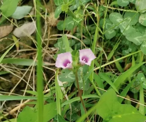 草本;茎缠绕或有时平卧,无毛或散生毛,且主要在节上。叶宽卵形至圆形,长2.5-7厘米,宽2-6厘米,全缘或有粗齿或深3裂,基部心形,两面无毛或散生疏柔毛;叶柄长2.5-6厘米,无毛或有时有小疣。花序腋生,花序梗短于或长于叶柄,长2.5-5.5厘米,较叶柄粗壮,无毛,明显有棱角,顶端具小疣,1朵花或少花至数朵花成伞形状聚伞花序;花梗多少具棱,有小瘤突,无毛,长5-7毫米;苞片小,披针状长圆形;萼片近相等或稍不等,长5-8毫米,外萼片稍短或近等长,长圆形,钝或锐尖,具小短尖头,背部散生疏柔毛,边缘明显有缘毛,内萼片有时稍宽,椭圆状长圆形,锐尖,具小短尖头,无毛或散生毛;花冠漏斗状,长约1.5厘米,无毛,淡红色或淡紫红色,冠檐裂片短而钝,有小短尖头;雄蕊内藏,花丝基部有毛;子房有毛。蒴果近球形,高5-6毫米,具花柱基形成的细尖,被细刚毛,2室,4瓣裂。种子4或较少,长3.5毫米,无毛。