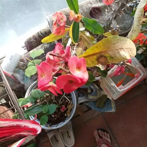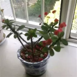 虎刺梅:别称铁海棠,是蔓生灌木植物。茎多分枝,长60-100厘米,直径5-10毫米,具纵棱,密生硬…