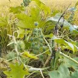 蓖麻是大戟科蓖麻属一年生粗壮草本或草质灌木。小枝、叶通常被白霜,茎直立,无毛,多液汁,绿色或稍带紫色,…